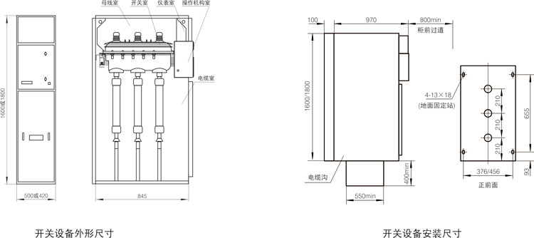 儀表室位于開關(guān)設(shè)備的上部,室內(nèi)可裝設(shè)電流表、電壓表、指示燈以及電動(dòng)操作機(jī)構(gòu)等。